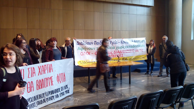 Κινητοποίηση ΕΛΜΕ, Συλλόγων Πρωτοβάθμιας Εκπαίδευσης, Συλλόγου Αδιορίστων, Φοιτητικών Συλλόγων ενάντια στη φιέστα δήθεν διαλόγου του υπ. Παιδείας στο δημαρχείο Θεσσαλονίκης που τελικά ακυρώθηκε...