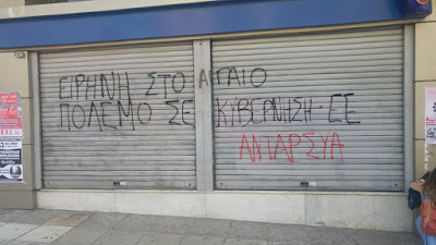 συνάδελφου με μήνυμα αγώνα ενάντια στον πόλεμο.
